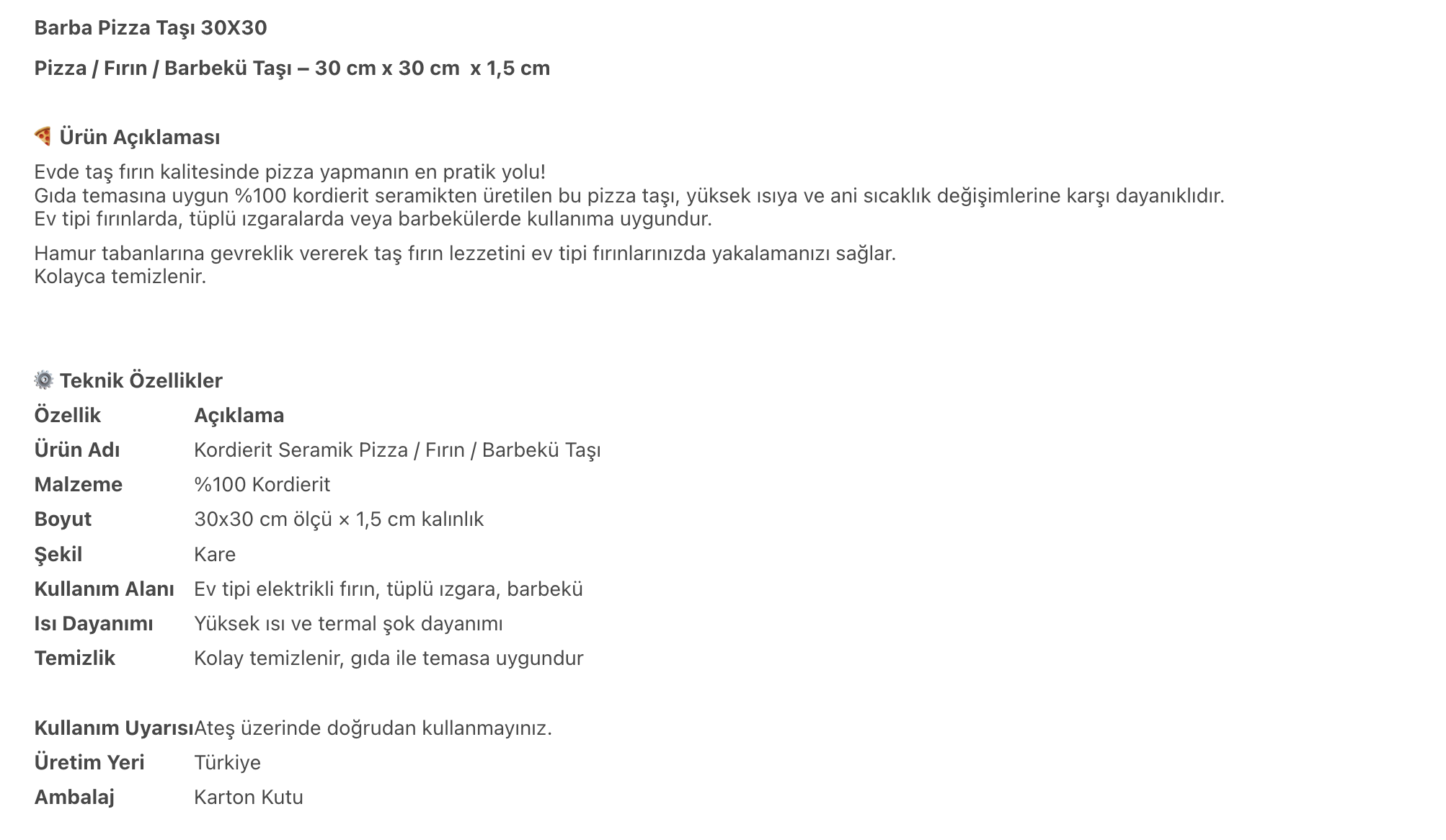 Pizza Taşı 30X30 (Elektrikli Fırın Uyumlu)